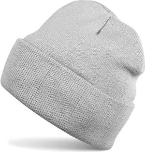 Unisex Beanie Mütze einfarbig | Klassische Feinstrick Winter Strickmütze mit breitem Umschlag | Elastische Beanie in vielen Farben für Damen und Herren, Farbe:Hellgrau