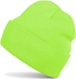 Unisex Beanie Mütze einfarbig | Klassische Feinstrick Winter Strickmütze mit breitem Umschlag | Elastische Beanie in vielen Farben für Damen und Herren, Farbe:Neongrün
