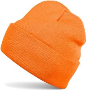 Unisex Beanie Mütze einfarbig | Klassische Feinstrick Winter Strickmütze mit breitem Umschlag | Elastische Beanie in vielen Farben für Damen und Herren, Farbe:Orange