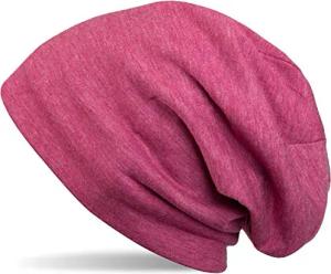Unisex Beanie Mütze Einfarbige mit Thermo-Fleece Futter, warme Winter Mütze gefüttert 04024008, Farbe:Himbeer-Rot meliert