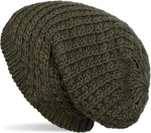 Unisex Strick Beanie Mütze grob gestrickt, Slouch Longbeanie, Grobstick Winter Strickmütze 04024158, Farbe:Oliv