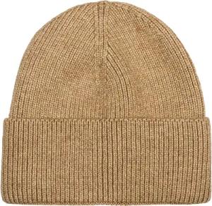Unisex Beanie Mütze mit Fleece Innenfutter und Label | Warme Winter Strickmütze aus Feinstrick | Elastische Longbeanie für Damen und Herren, Farbe:Hellbraun