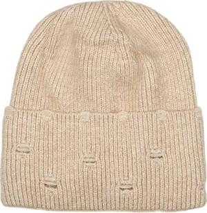 Unisex Strickmütze mit Rippenmuster und Rissen im Destroyed Look, Thermo-Fleece Innenfutter, Beanie 04024191, Farbe:Beige