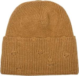 Damen Strick Beanie Mütze mit Bubblemuster, Einfarbige Winter, Raspberry Pattern Strickmütze 04024193, Farbe:Cognac