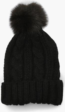 Damen Warm Strick Kunstfell Mütze mit Bommel und Fleecefutter (One Size, Black (Arden))
