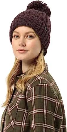 Damen-Winter-Pelz-Mütze Zickzack gemusterte Bommelmütze | Bommelmütze mit Thermomanschette für Damen (Einheitsgröße, Wein)