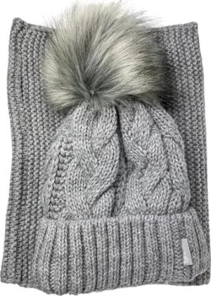 Mütze & Schal Set / 2 teilig/Damen Kombi - Beanie mit großem Bommel und Loop/kuschelig gestrickt (grau/natur)
