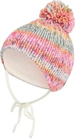 Strickmütze aus Multicolor Garn - Unisex Bommelmütze mit tollem Strickmuster - Kindermütze mit Futter aus wärmendem Microfleece - Wintermütze - beige, 53