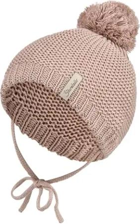 Damen Mütze Strickmütze Bommelmütze Lony, Farbe:Altrosa, Artikel:-34C Cooper pink