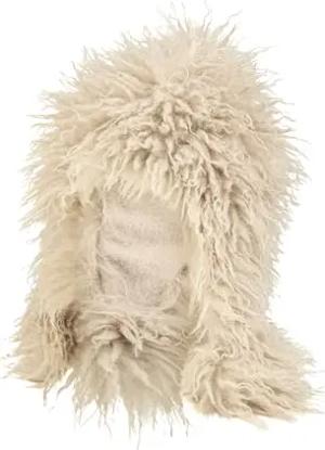 Inkamütze Plüsch – warme Mädchen Wintermütze mit Ohrenklappen und Pompons – gefüttert mit Baumwollfleece - stylische Kinder Mütze – Natur, Größe 51