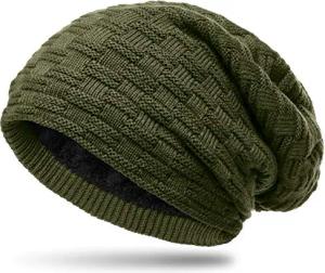 MU133 warme Feinstrick Beanie mit weichem Fleece Gefüttert, Farbe:oliv grün, Größe:One Size