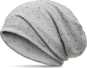 MU137 Beanie Mütze mit Strass und warmem Flanell Stoff, Größe:One Size, Farbe:hellgrau (meliert)