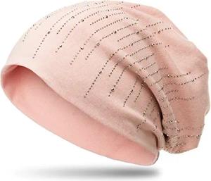 MU142 Beanie Mütze mit stylischen Strass Streifen und warmem Flanell Stoff, Größe:One Size, Farbe:rosa