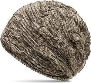 MU154 gefütterte Feinstrick Beanie Mütze mit stylischem Flecht Muster, Farbe:braun/grau, Größe:One Size