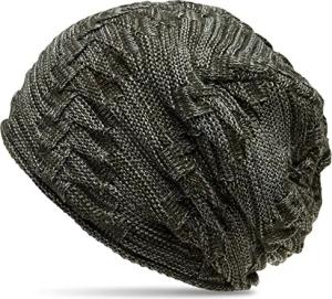 MU154 gefütterte Feinstrick Beanie Mütze mit stylischem Flecht Muster, Farbe:olivgrün/grau, Größe:One Size