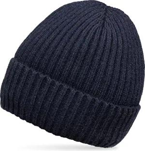 MU133 warme Feinstrick Beanie mit weichem Fleece Gefüttert, Farbe:dunkelblau, Größe:One Size