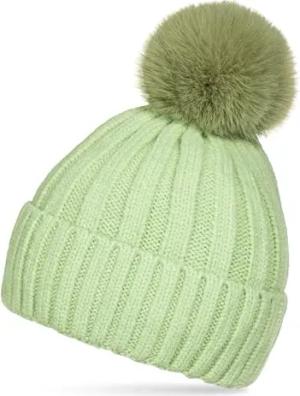 MU054 Damen Winter Strickmütze mit großem Fellbommel, Farbe:Khaki