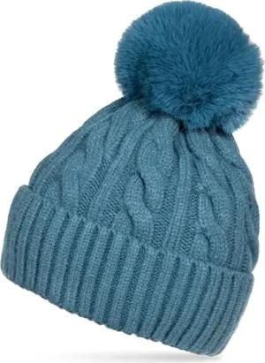 MU218 Warme Damen Bommelmütze mit Teddy-Fleece und Zopfmuster, Farbe:blau, Hutgröße:One Size