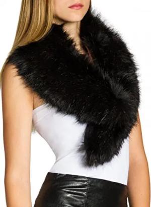 STO001 Damen Kunst Pelzkragen, Farbe:schwarz, Größe:One Size