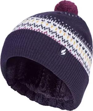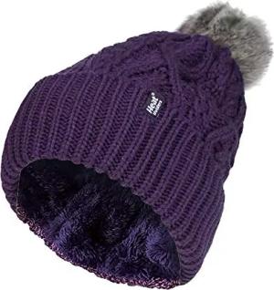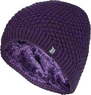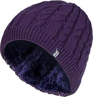 Damen Winter Warm Strick Beanie/Mütze mit Fleecefutter (One Size, Purple (Nora))