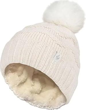 Beanie Mütze für Damen mit Heatweaver Fleecefutter Modische Damen Umsatz Cuff Mütze (Einheitsgröße, Creme)