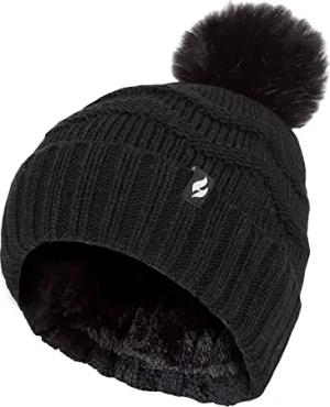 Beanie Mütze für Damen mit Heatweaver Fleecefutter Modische Damen Umsatz Cuff Mütze (Einheitsgröße, Schwarz)