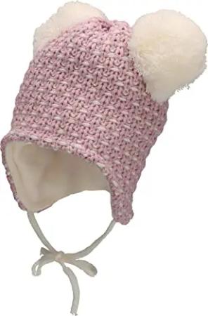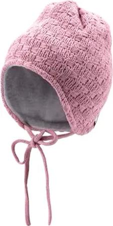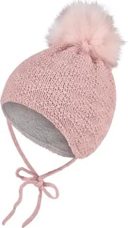 Strickmütze mit Schleifen Muster - Mädchen Beanie, gefüttert mit weichem Baumwollfleece - Winter Babymütze mit Ohrenklappen und Bindeband - mattrosa, 39