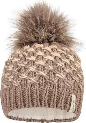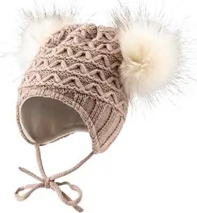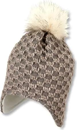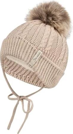 Strickmütze mit Bommeln aus Kunstpelz - Mädchen Mütze mit tollem Strickmuster - Babymütze mit Futter aus weichem Baumwolljersey - Wintermütze mit Ohrenklappen und Bindeband - Sand,43
