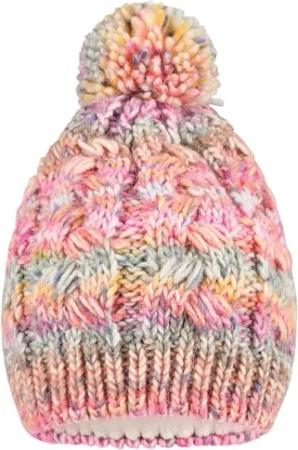 Strickmütze aus Multicolor Garn - Unisex Bommelmütze mit tollem Strickmuster - Kindermütze mit Futter aus wärmendem Microfleece - Wintermütze - beige, 53