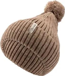 Strickmütze aus weichem Melange Garn - Unisex Bommelmütze im Rippenstrick mit Umschlag - Baby Wintermütze - beige, 45
