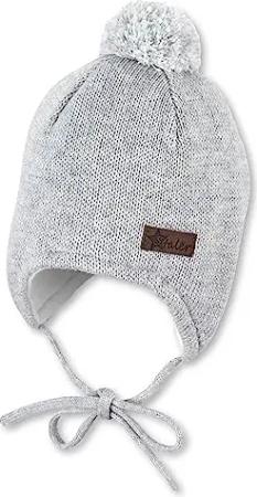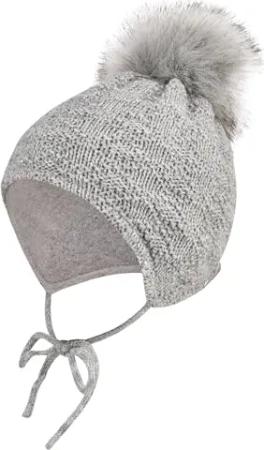 Unisex Kinder Mütze Baby Bommelstrickmütze Umschlag, anthrazit meliert, 49