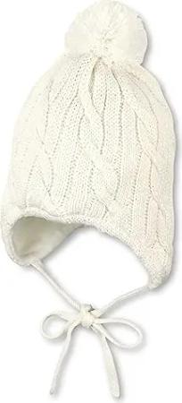 Baby Mädchen Mütze Baby Bommelmütze Struktur Mütze - Mütze Baby - aus Strick mit Ohrenklappen und Bindeband - beige, 45