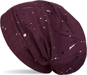 Beanie Mütze mit Falten und All Over Farbkleckse, Slouch Longbeanie, Unisex 04024149, Farbe:Bordeaux-Violett