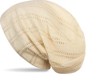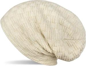 Beanie Mütze mit Lochstrick Muster, Vintage Slouch Longbeanie, Unisex 04024095, Farbe:Creme-Beige
