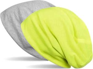 Beanie Wendemütze in Unifarben, Slouch Mütze, leicht und weich, Longbeanie, Unisex 04024115, Farbe:Grau meliert/Neongelb