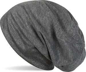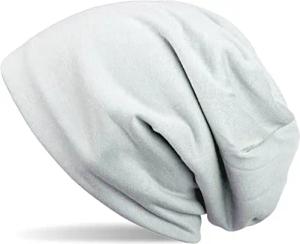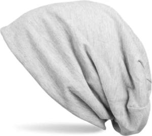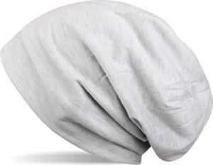 Unisex Stoff Beanie Mütze einfarbig, leicht und weich, Longbeanie Slouch Beanie 04024018, Farbe:Hellgrau meliert