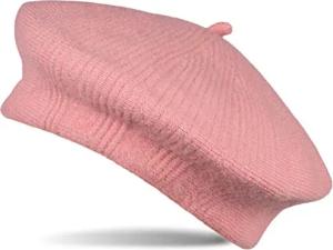 Damen Feinstrick Baskenmütze mit dezentem Streifen Muster, Winter, Barett, Béret, Franzosen Mütze 04024200, Farbe:Rose