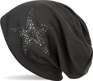 Damen Slouch Beanie Mütze mit Strass Stern | Glitzer Longbeanie aus weicher Viskose | One Size für Erwachsene, Farbe:Anthrazit