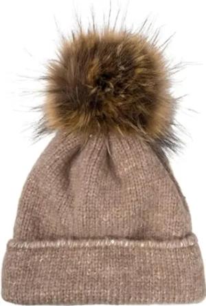 Damen Strick Bommelmütze Einfarbig mit Pailletten und Fleece Futter, Winter Fellbommel Mütze, Strickmütze 04024210, Farbe:Braun