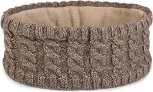 Damen Strick Stirnband mit Zopfmuster und Pailletten, Fleece Futter, Haarband, Thermo Winter Headband 04026028, Farbe:Braun