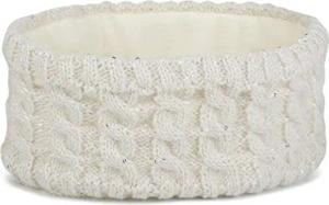 Damen Strick Stirnband mit Zopfmuster und Pailletten, Fleece Futter, Haarband, Thermo Winter Headband 04026028, Farbe:Creme
