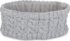 Damen Strick Stirnband mit Zopfmuster und Pailletten, Fleece Futter, Haarband, Thermo Winter Headband 04026028, Farbe:Hellgrau