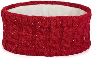 Damen Strick Stirnband mit Zopfmuster und Pailletten, Fleece Futter, Haarband, Thermo Winter Headband 04026028, Farbe:Rot