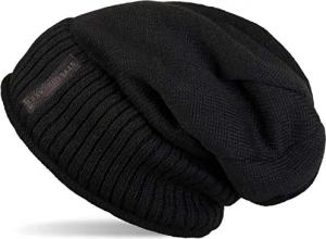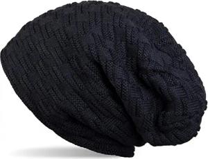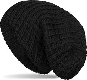 Unisex Strick Beanie Mütze grob gestrickt, Slouch Longbeanie, Grobstick Winter Strickmütze 04024158, Farbe:Schwarz