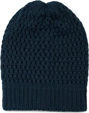 Strick Beanie Mütze mit Loch Muster, Slouch Longbeanie Winter, Strickmütze, Unisex 04024139, Farbe:Dunkelblau