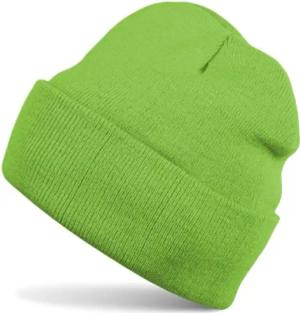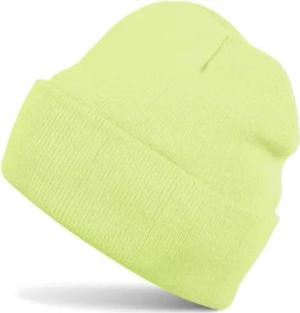 Unisex Beanie Mütze einfarbig | Klassische Feinstrick Winter Strickmütze mit breitem Umschlag | Elastische Beanie in vielen Farben für Damen und Herren, Farbe:Limettengrün