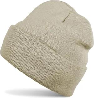 Unisex Beanie Mütze einfarbig | Klassische Feinstrick Winter Strickmütze mit breitem Umschlag | Elastische Beanie in vielen Farben für Damen und Herren, Farbe:Beige