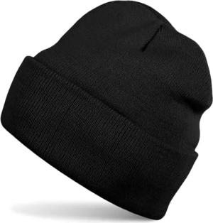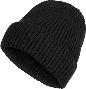 Unisex Feinstrick Beanie Mütze mit Krempe, warme Winter Strickmütze Einfarbig, Rippen Strickmuster 04024154, Farbe:Schwarz