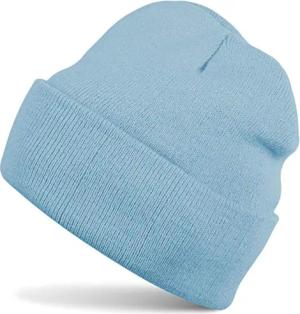 Unisex Beanie Mütze einfarbig | Klassische Feinstrick Winter Strickmütze mit breitem Umschlag | Elastische Beanie in vielen Farben für Damen und Herren, Farbe:Hellblau