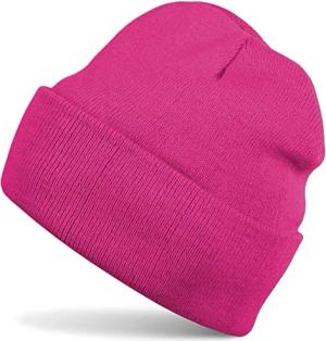 Unisex Beanie Mütze einfarbig | Klassische Feinstrick Winter Strickmütze mit breitem Umschlag | Elastische Beanie in vielen Farben für Damen und Herren, Farbe:Pink